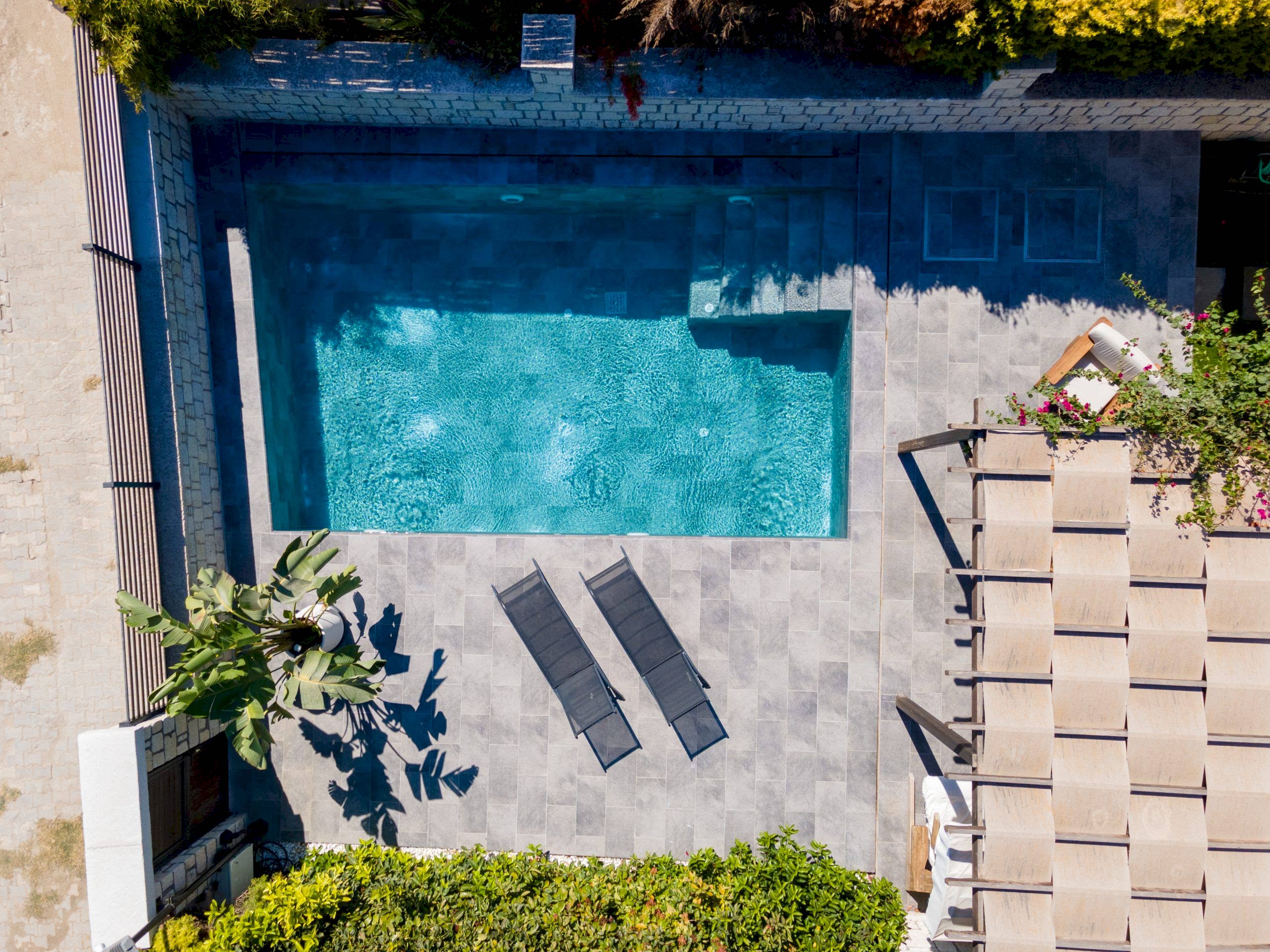 • Teras ile havuz etrafının bütünlüğünü tek tip porselen kullanarak tam bir bütünlük sağlandık.