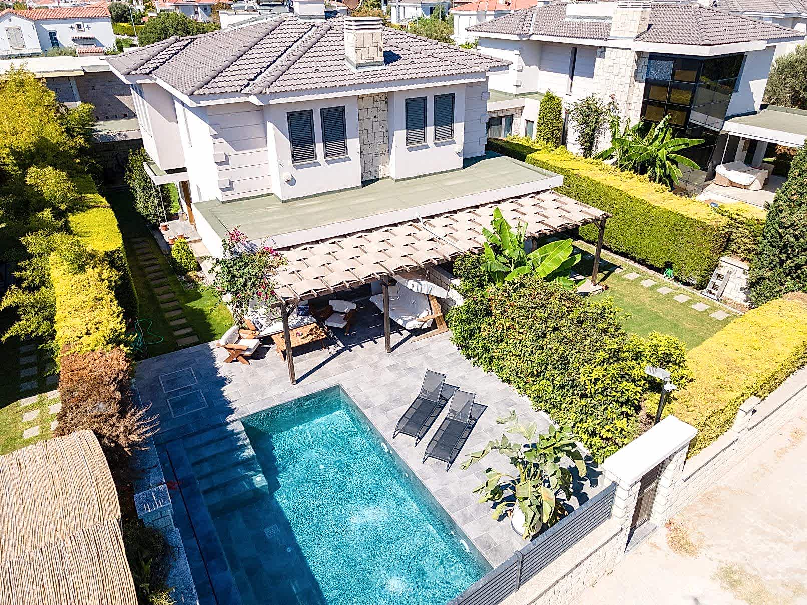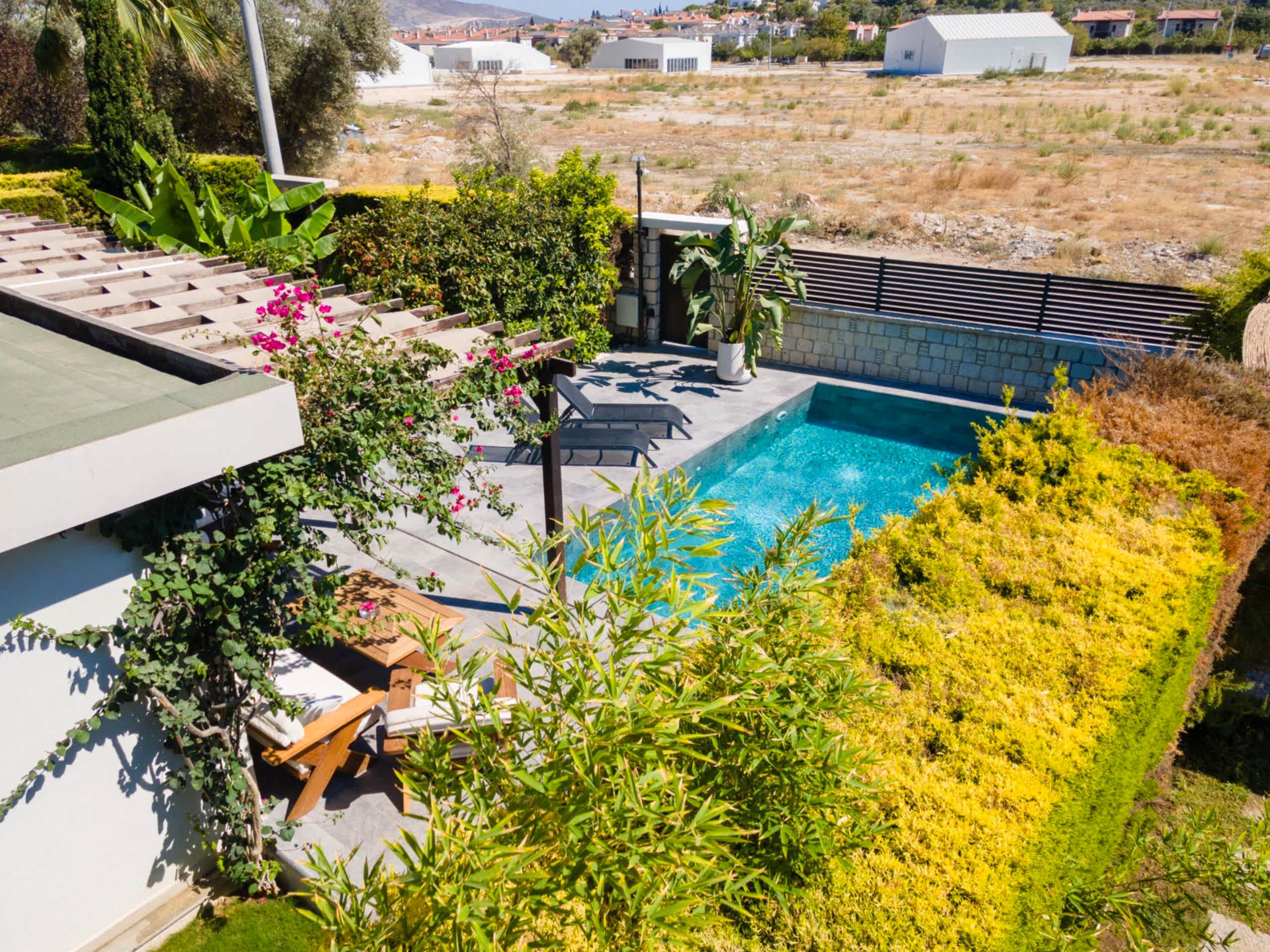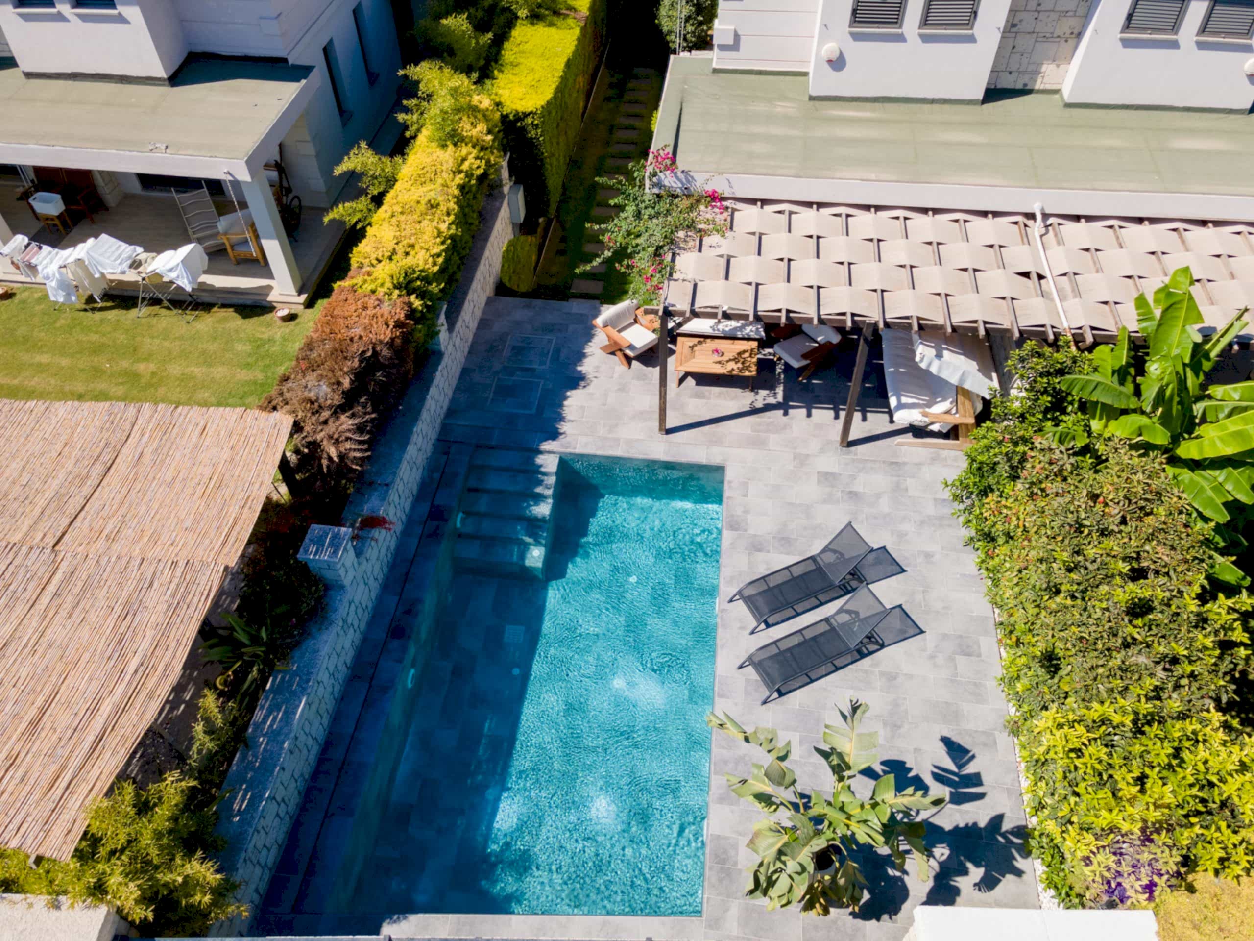 Evin bahçesini tamamen havuza göre özel olarak tasarladık.