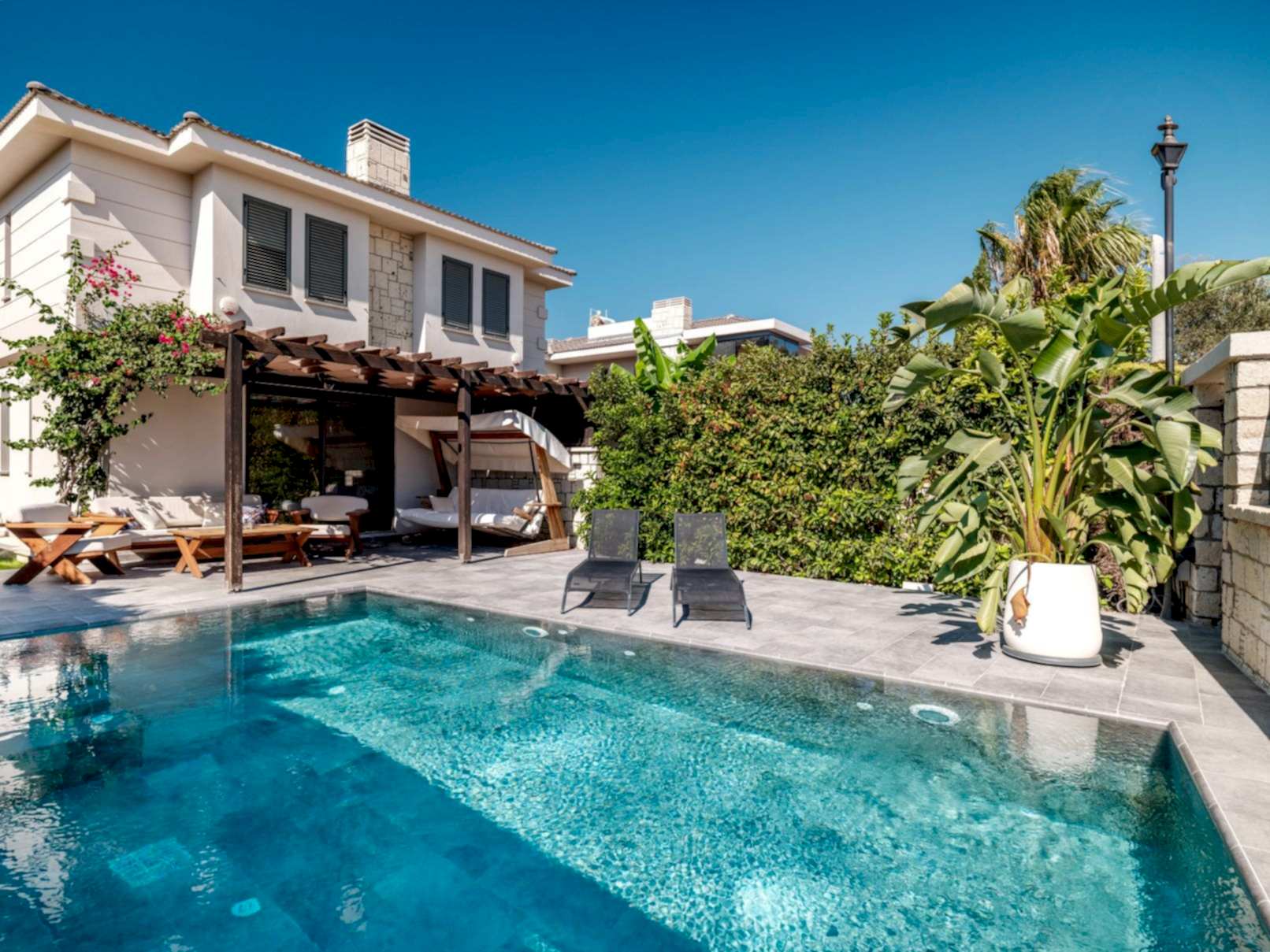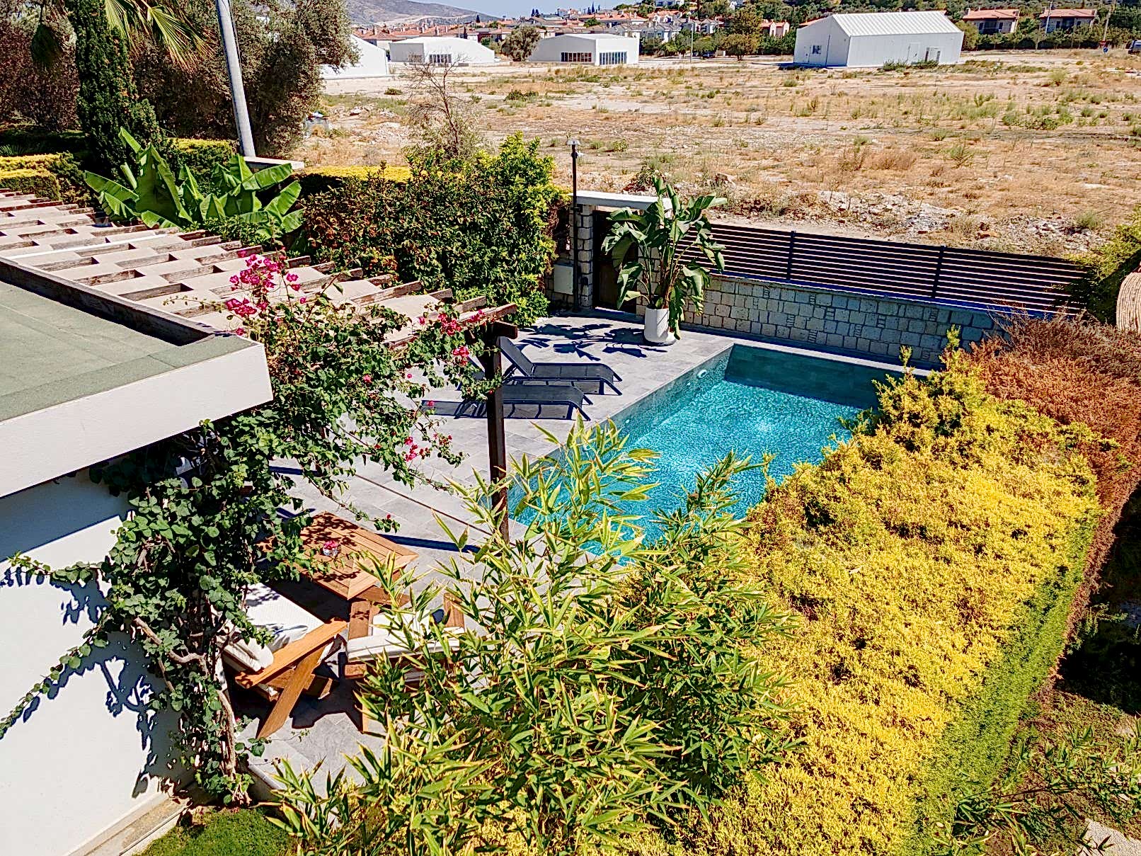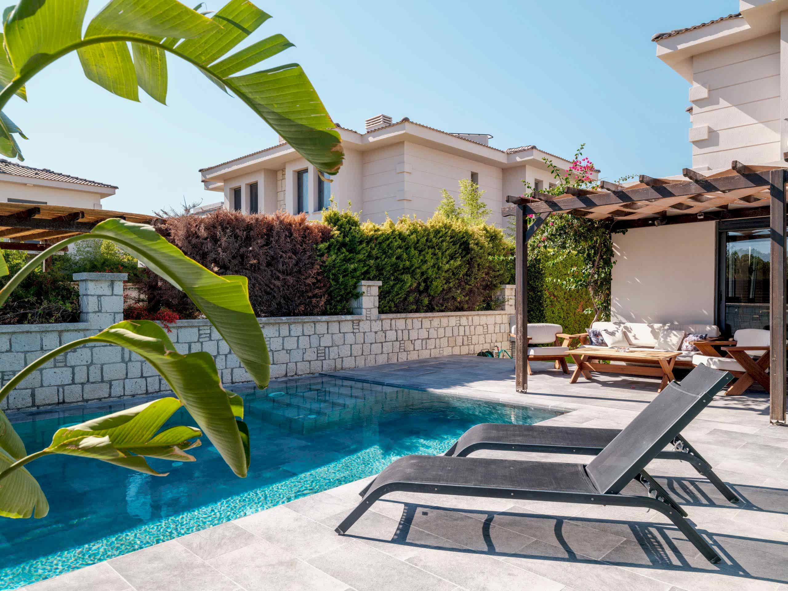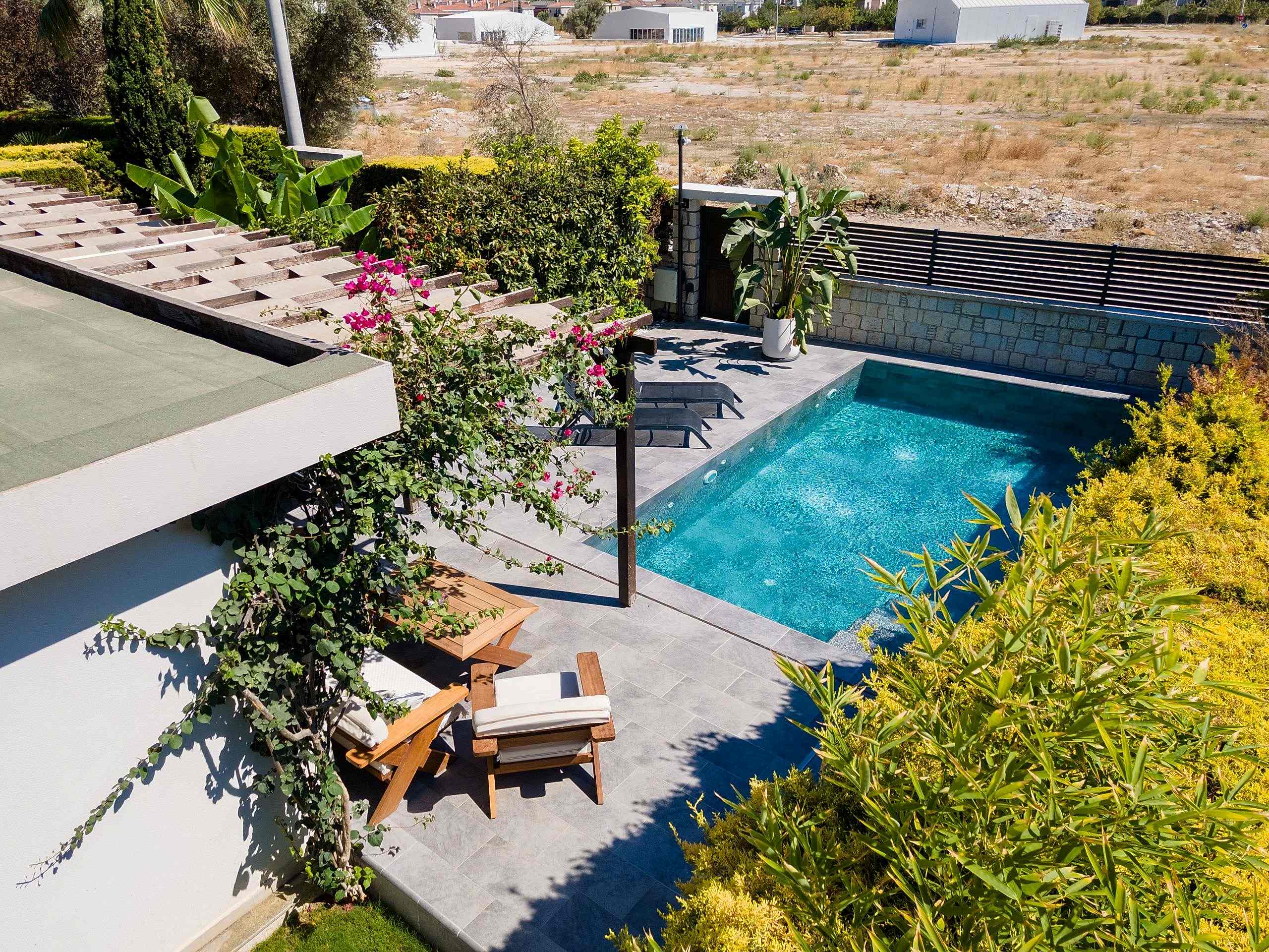 Evin bahçesini tamamen havuza göre özel olarak tasarladık.