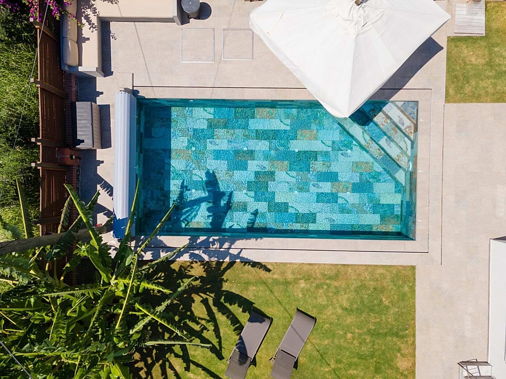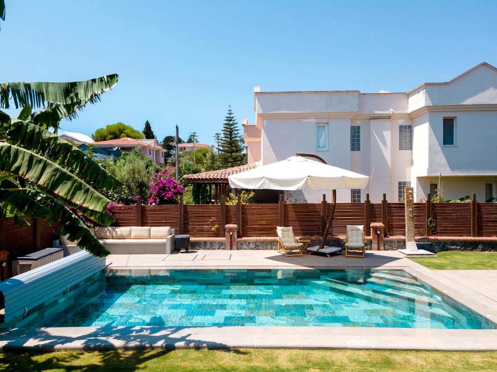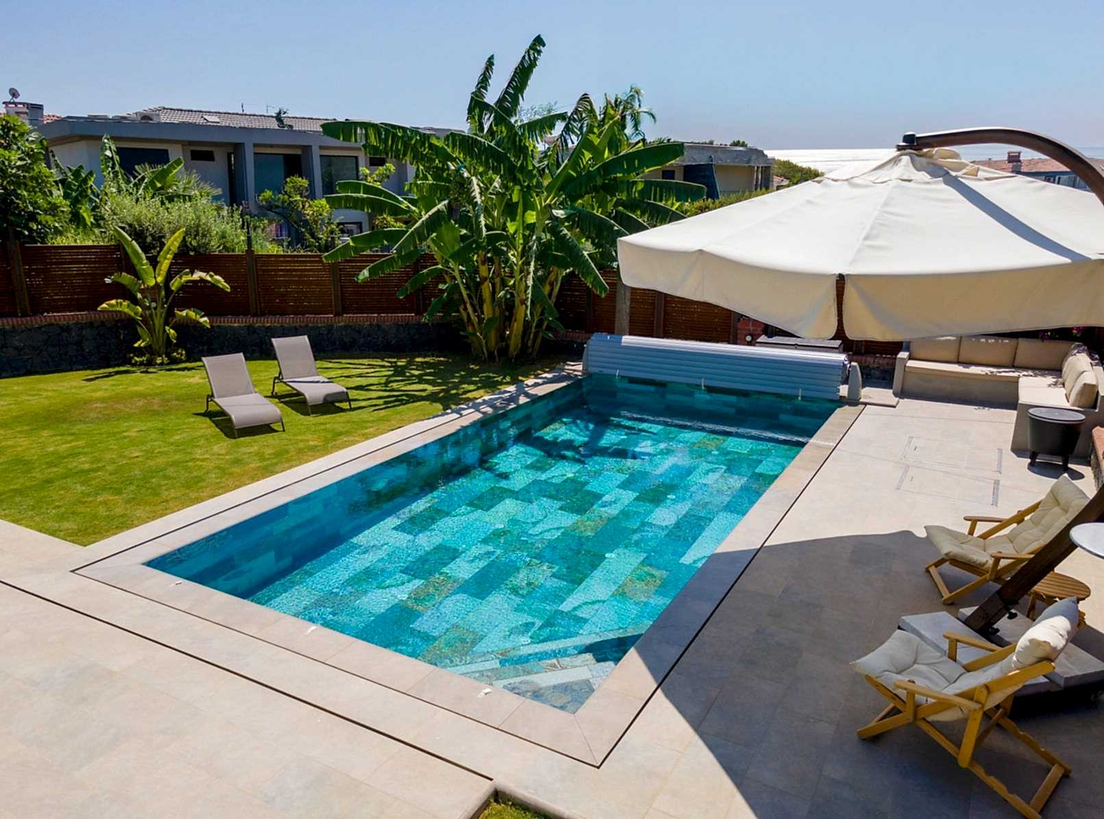 • Teras ile havuz etrafının bütünlüğünü tek tip porselen kullanarak tam bir bütünlük sağlandık.