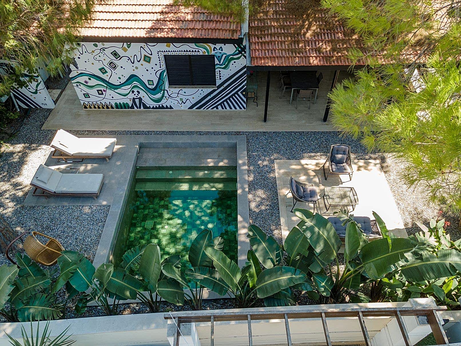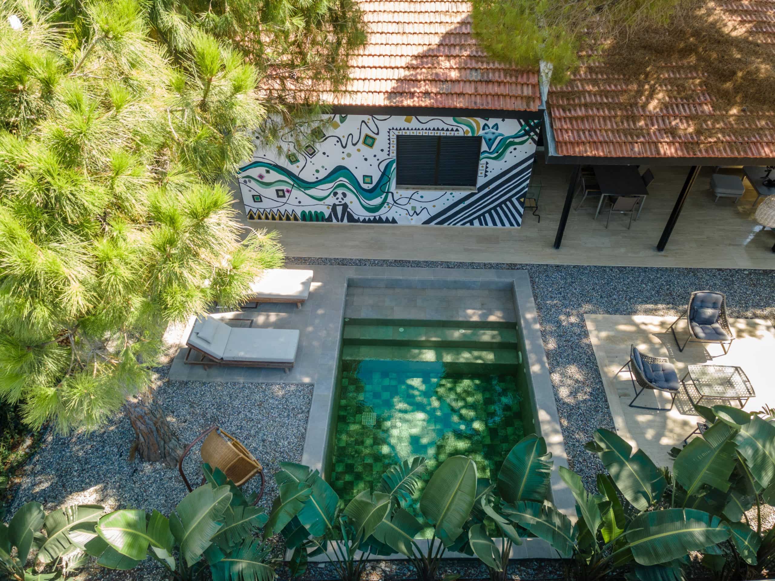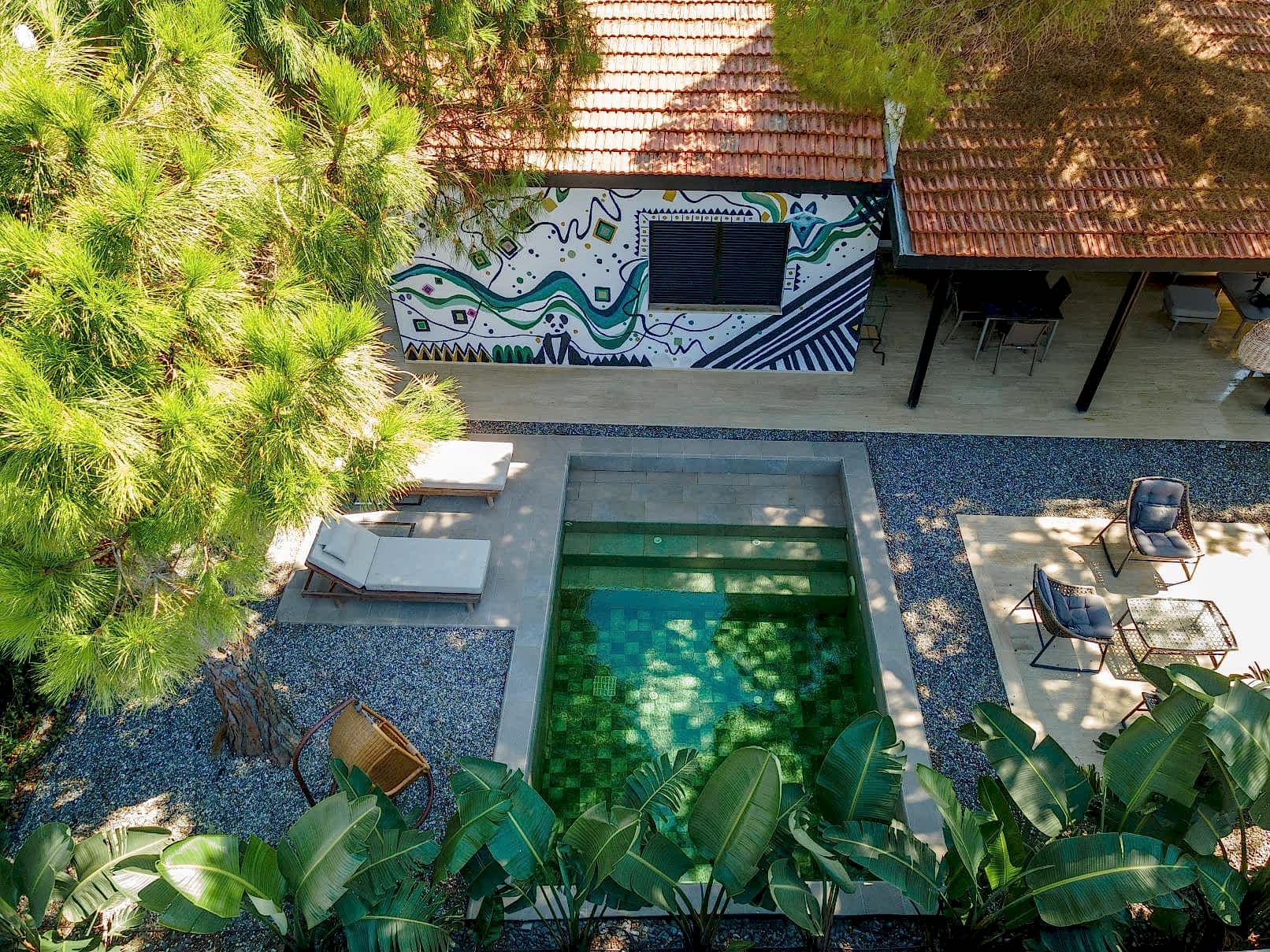 Çeşme Ilıca Şantiye Evleri projemizdeki yüzme havuzunu müşterimizin isteği üzerine özel olarak tasarladık;