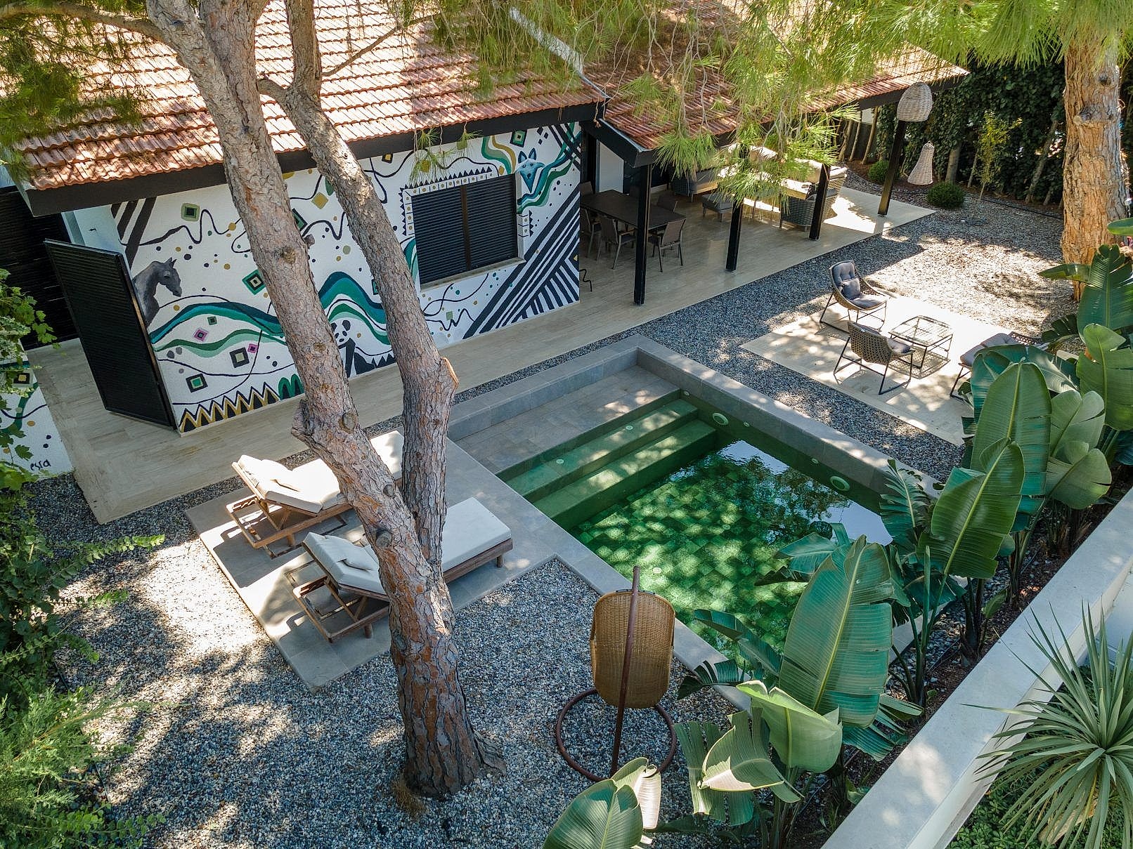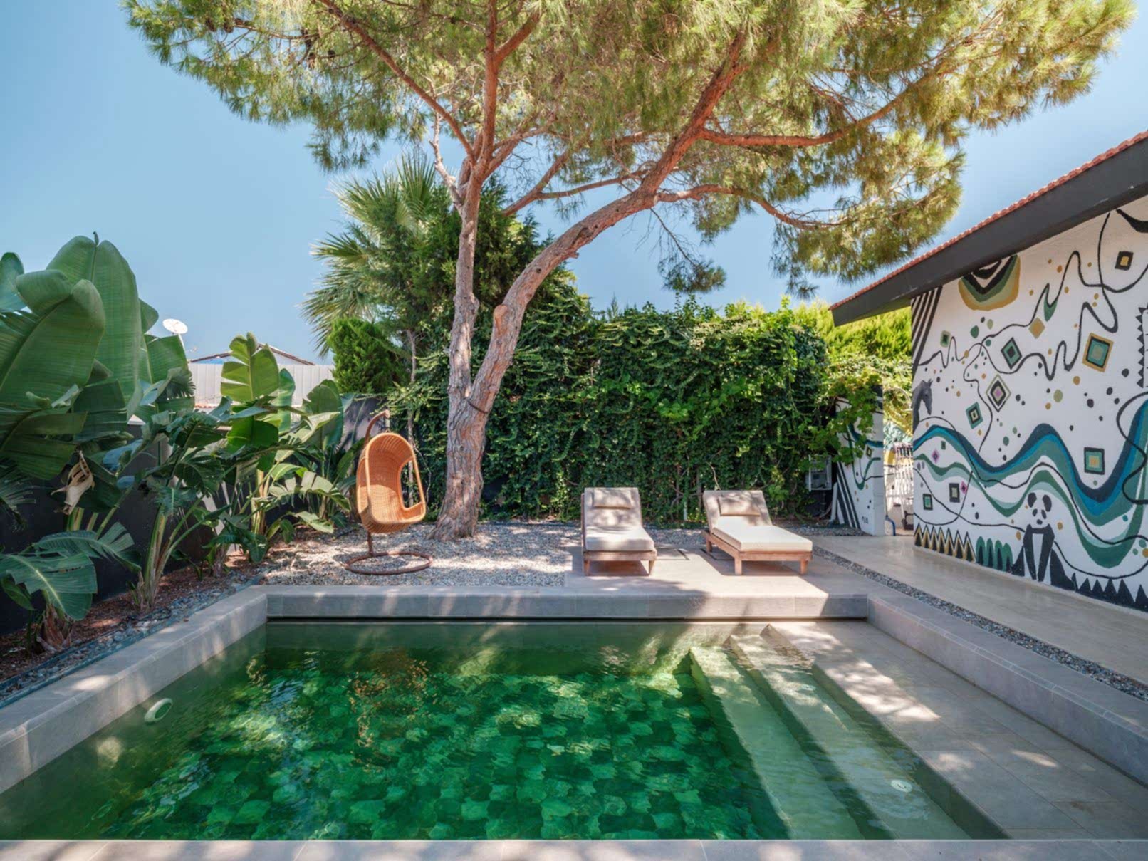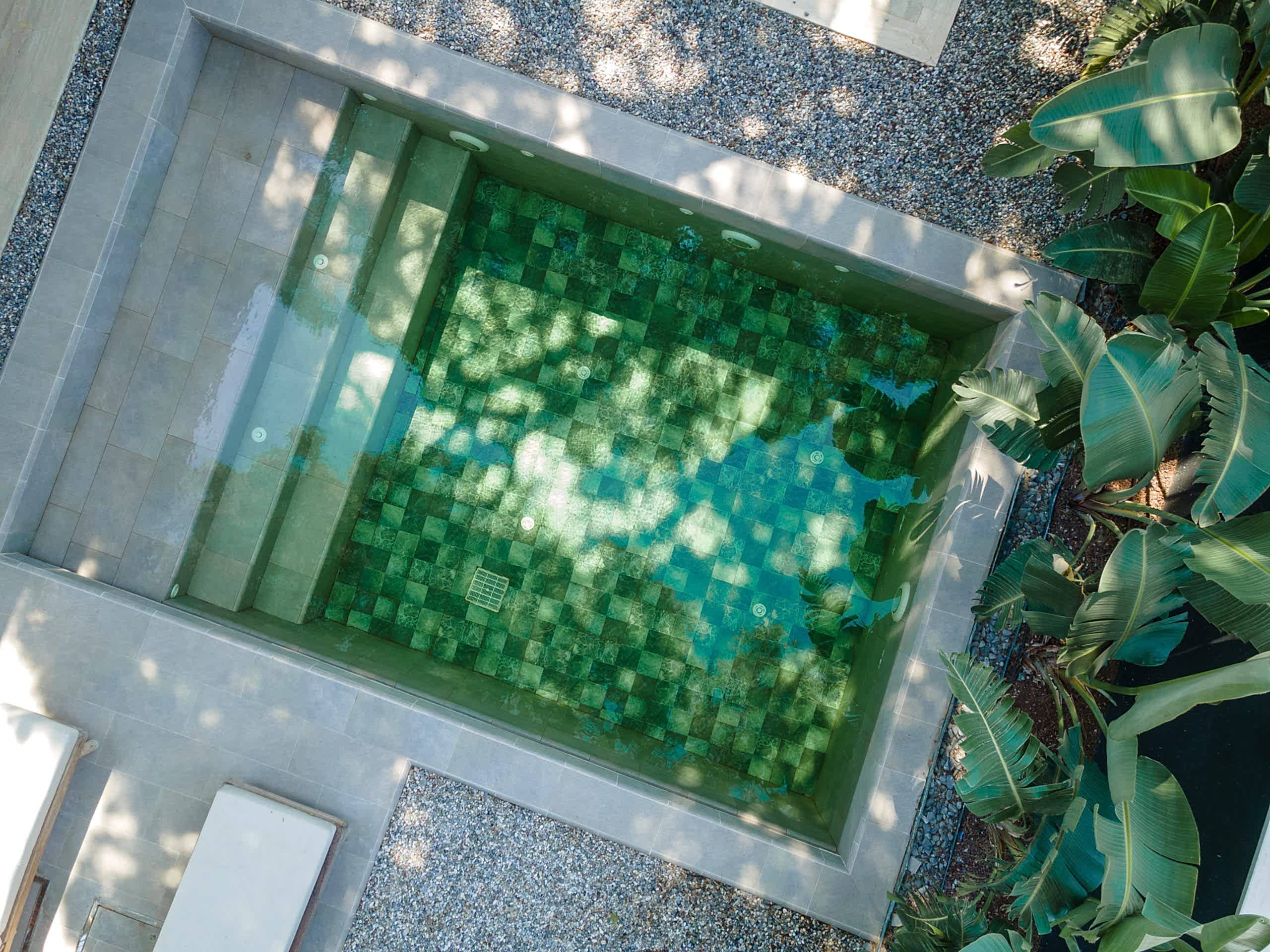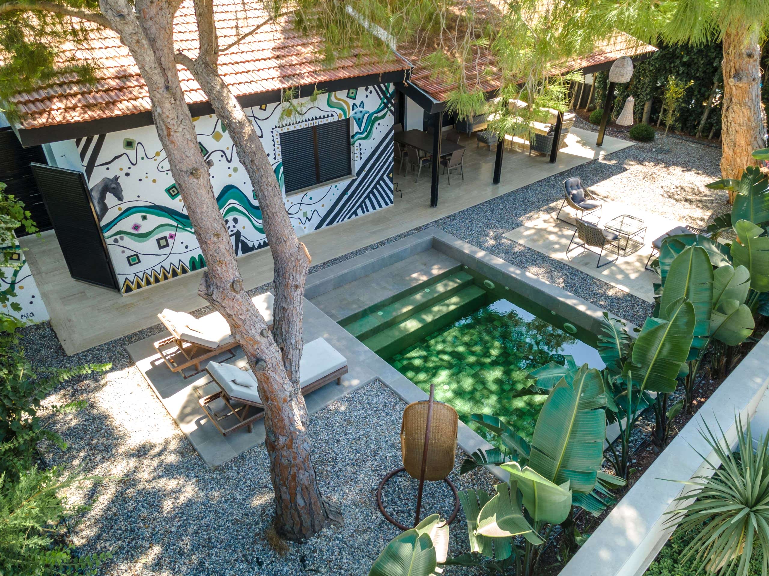 Çeşme Ilıca Şantiye Evleri projemizdeki yüzme havuzunu müşterimizin isteği üzerine özel olarak tasarladık;