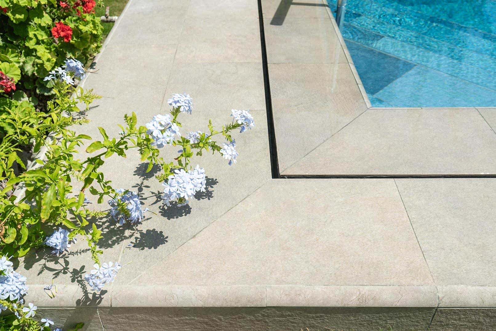 * Havuz etrafında 4×33 Serapool Natural Seri Mocha Birleştirme Dış Bükey.