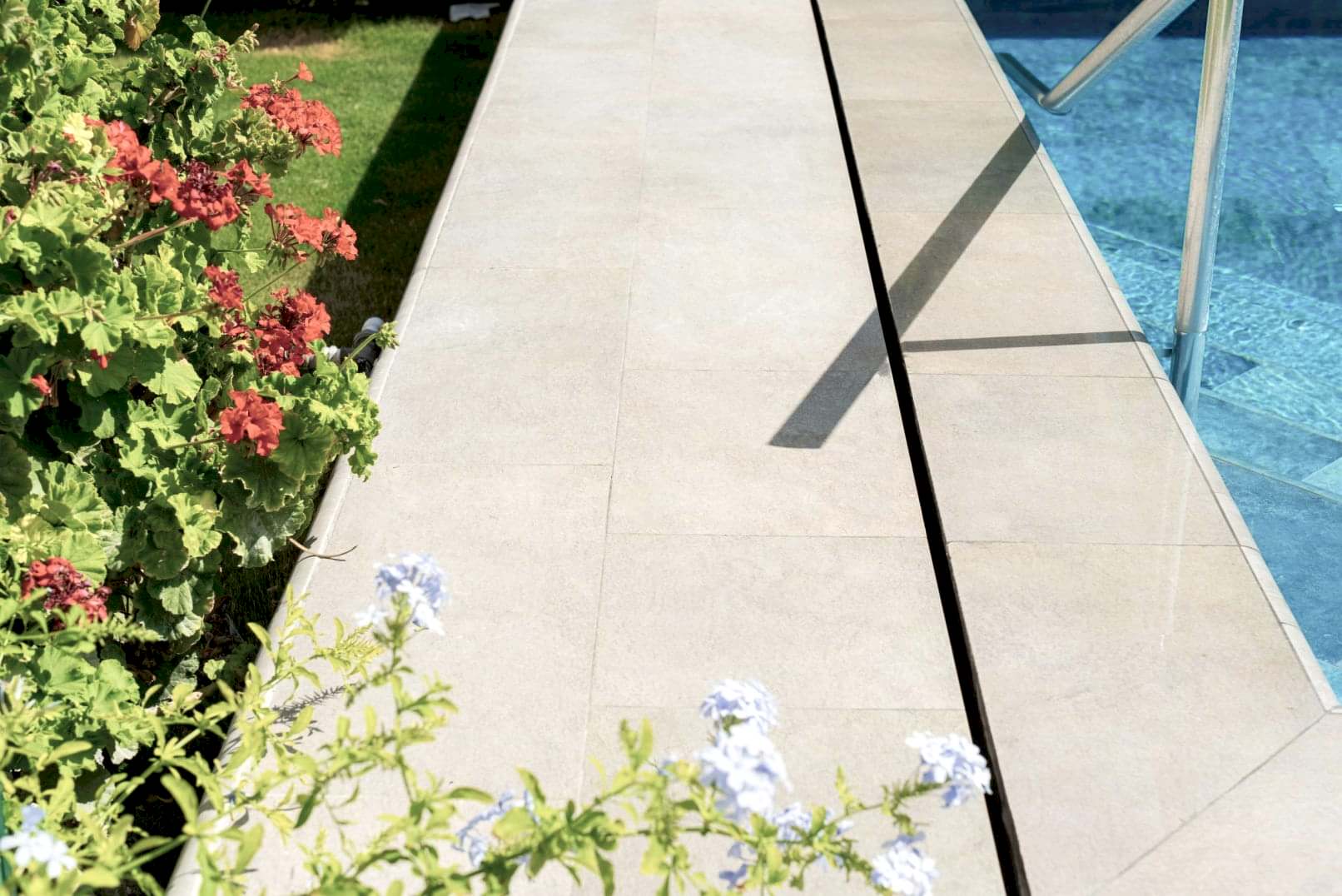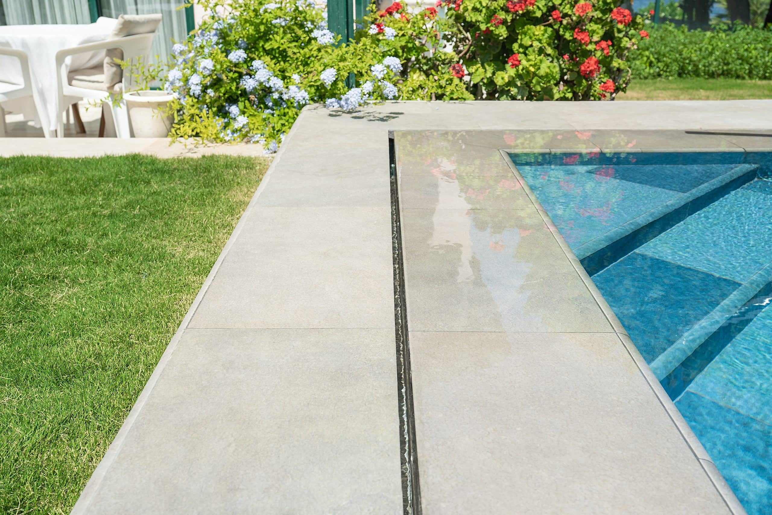 * Havuz etrafı küpeşte ve güneşlenme alanında 33×66 Serapool Natural Seri Mocha.